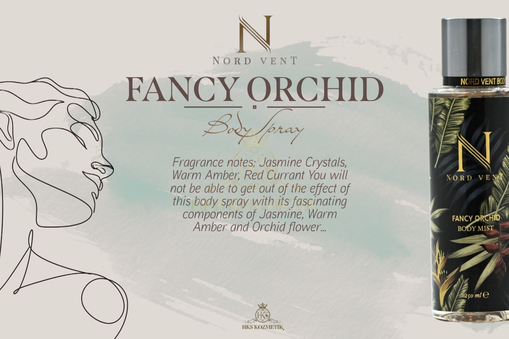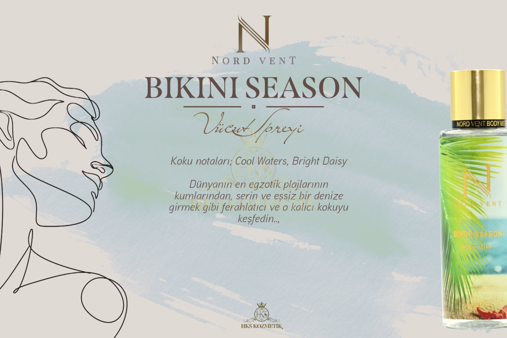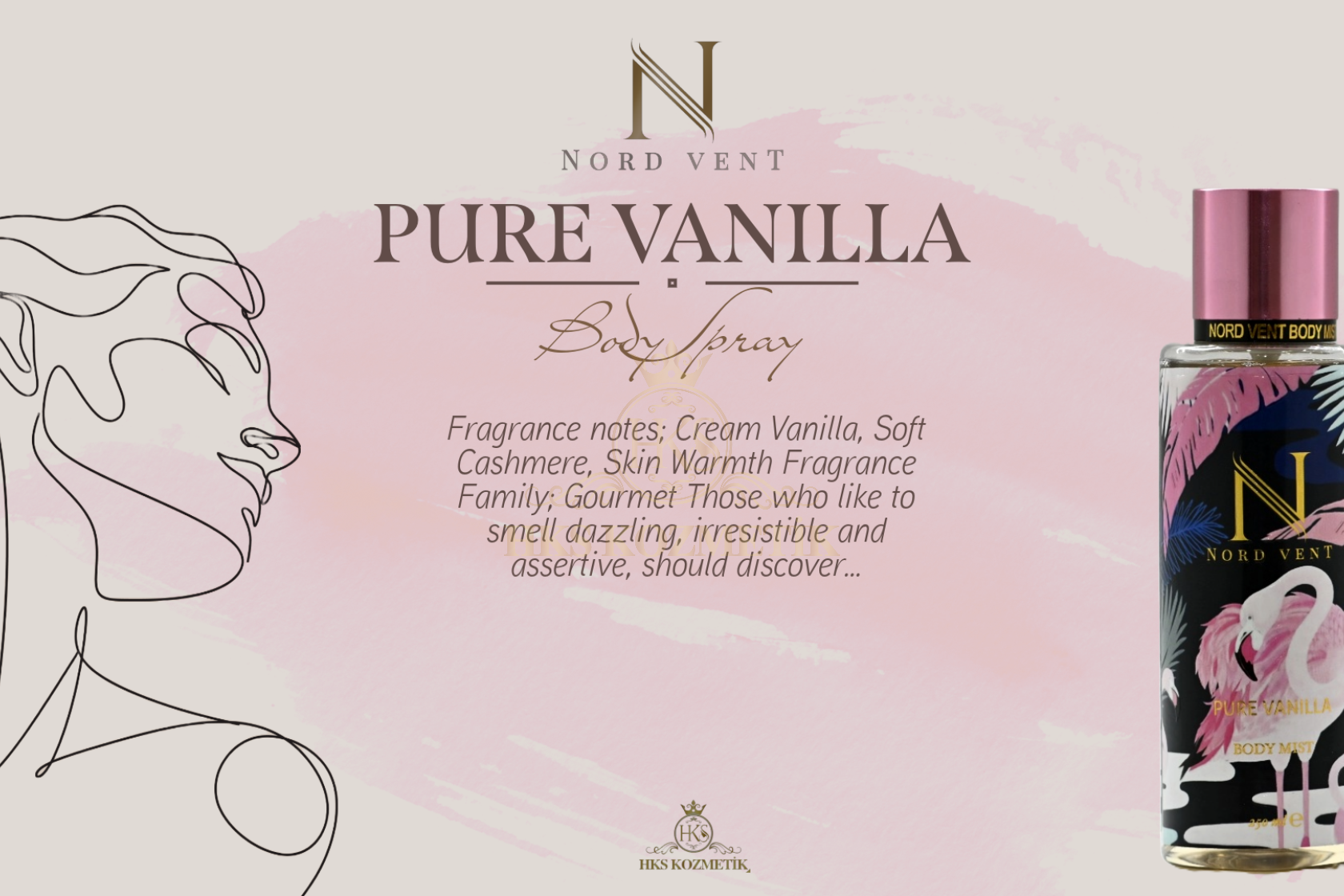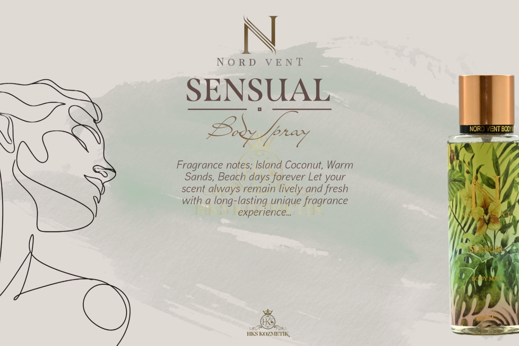 - Hks kozmetik bünyesinde geliştirilen ''Nord Vent'' body mist koku serisi dünyaca ünlü kokuların muadili olarak tasarlanmıştır. 12 farklı seçkin koku alternatifinden oluşan geniş koleksiyonuyla lüks segmentte ''birebir'' koku deneyimi sunacak şekilde özenle formüle edilmiştir. Yüksek esans kalitesi ile yakaladığımız güçlü kalıcılık etkisi premium bir performans vadeder. ''Nord Vent'' özenilmiş ve estetik tasarımı, kalite odaklı yaklaşımı ve prestij algısıyla koku deneyimini en maximum seviyede tüketiciyle buluşturmayı hedeflemiştir.