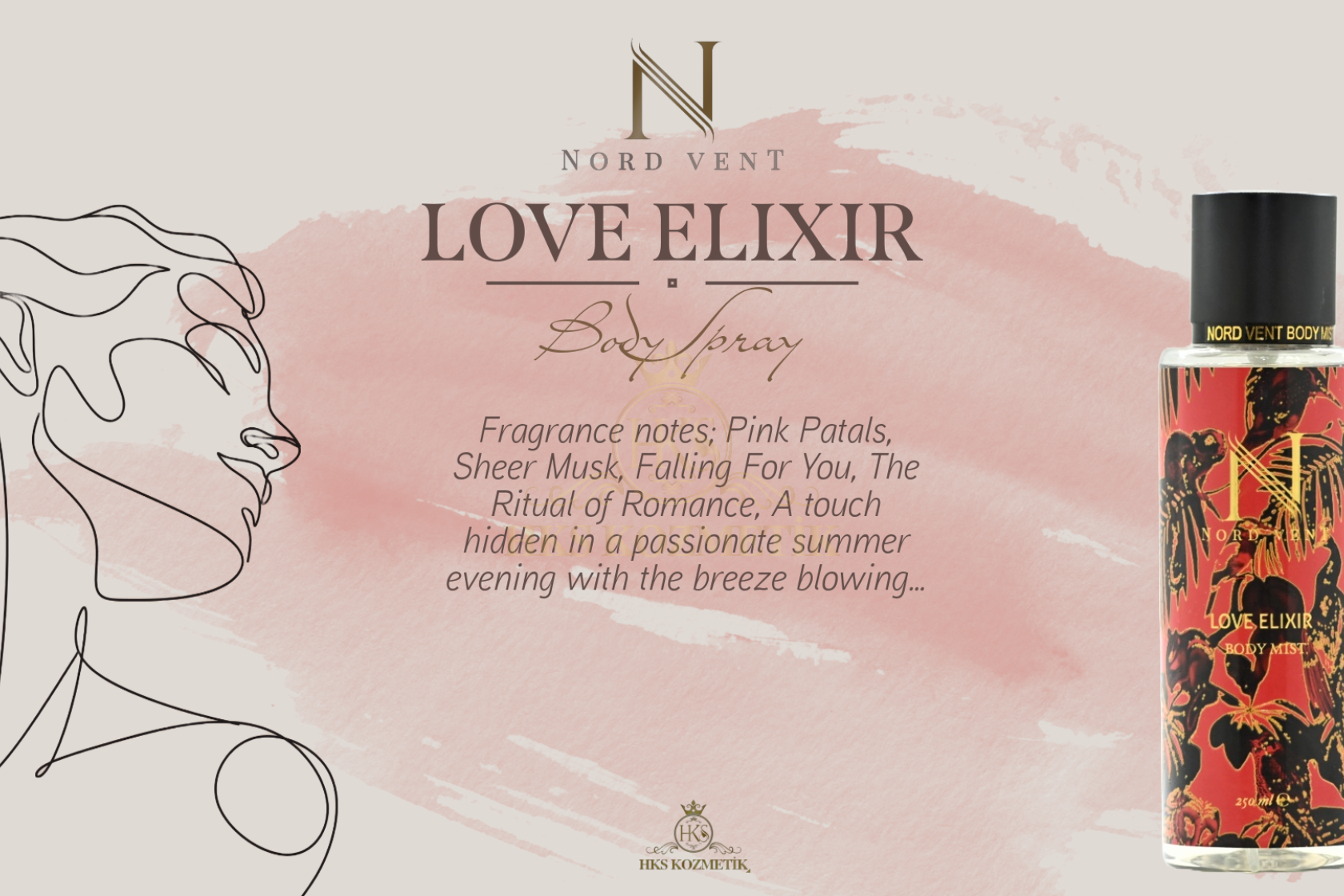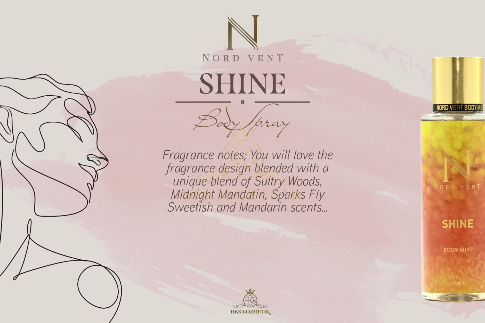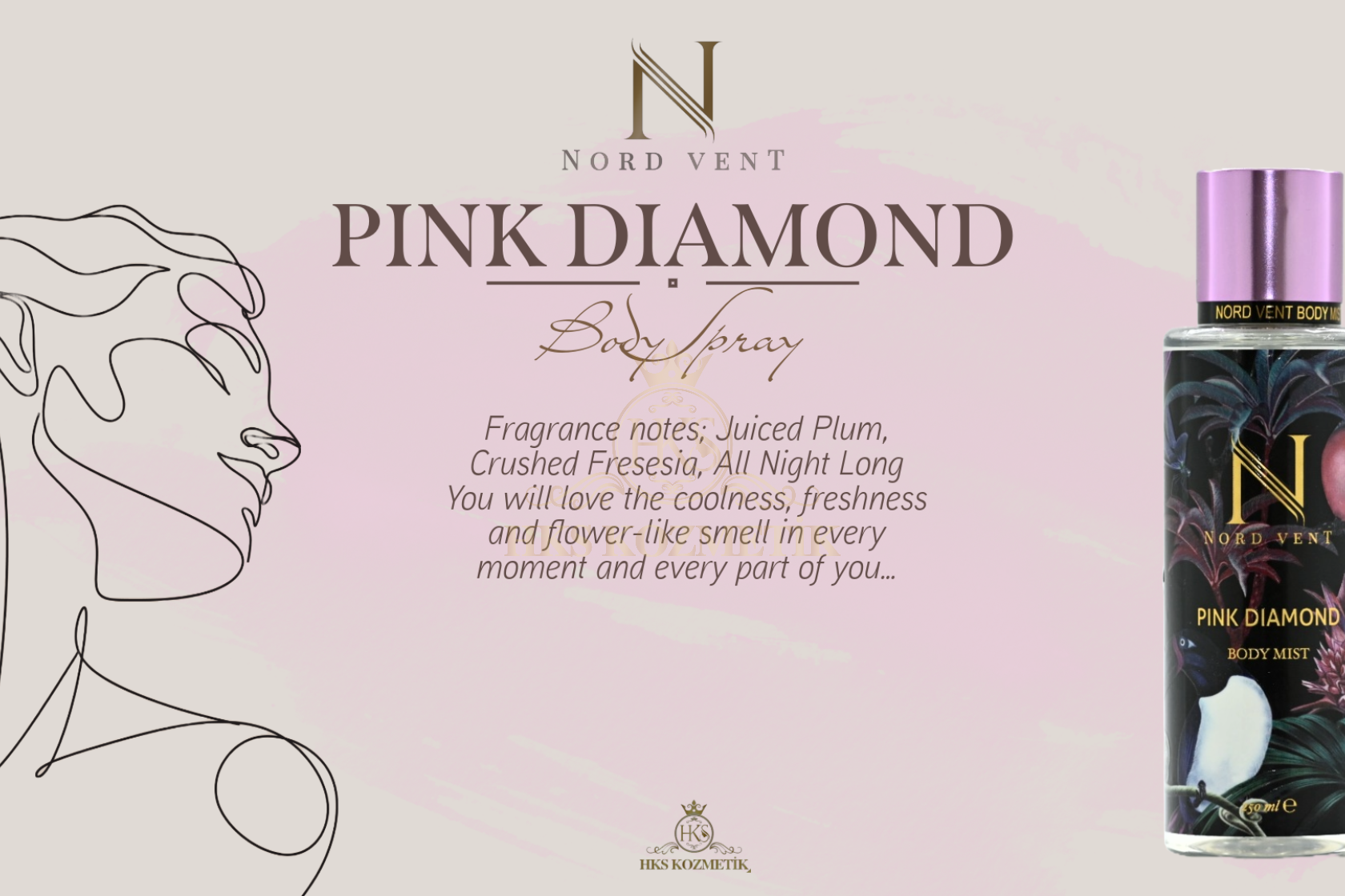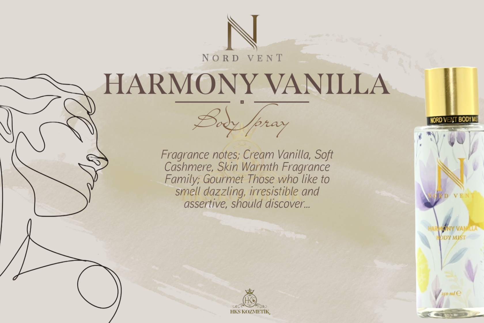 - Hks kozmetik bünyesinde geliştirilen ''Nord Vent'' body mist koku serisi dünyaca ünlü kokuların muadili olarak tasarlanmıştır. 12 farklı seçkin koku alternatifinden oluşan geniş koleksiyonuyla lüks segmentte ''birebir'' koku deneyimi sunacak şekilde özenle formüle edilmiştir. Yüksek esans kalitesi ile yakaladığımız güçlü kalıcılık etkisi premium bir performans vadeder. ''Nord Vent'' özenilmiş ve estetik tasarımı, kalite odaklı yaklaşımı ve prestij algısıyla koku deneyimini en maximum seviyede tüketiciyle buluşturmayı hedeflemiştir.